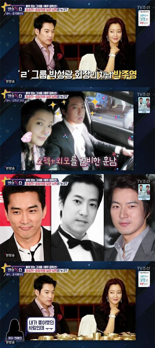 지난해 방송된 종합편성채널 TV조선 '별별톡쇼'에서 연예부기자는 "2007년 5월 김희선이 지인의 모임에서 만난 3살 연상의 사업가와 4개월째 열애중이라는 소식이 보도가 됐는데, 그후 9월 약혼식을 10월에 결혼식을 올렸다"고 말문을 열었다.
