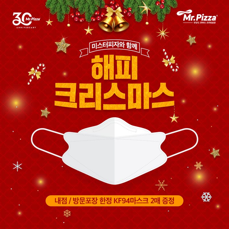 미스터피자가 25일부터 내점 및 방문포장 구매 시 KF94 마스크를 무료 제공한다. [자료=MP그룹]