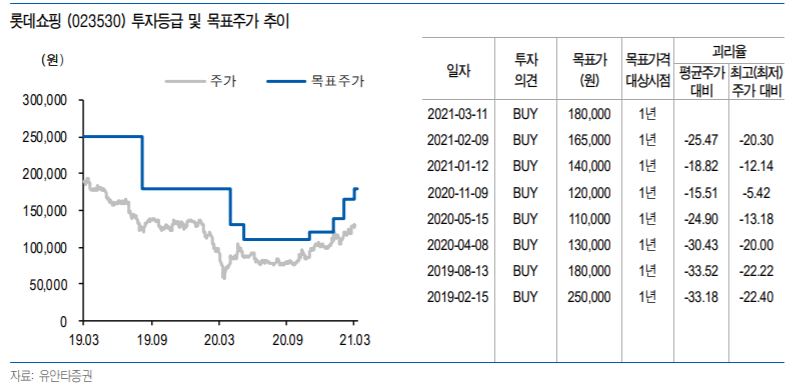 롯데쇼핑 투자등급 및 목표주가 추이 [자료=유안타증권]