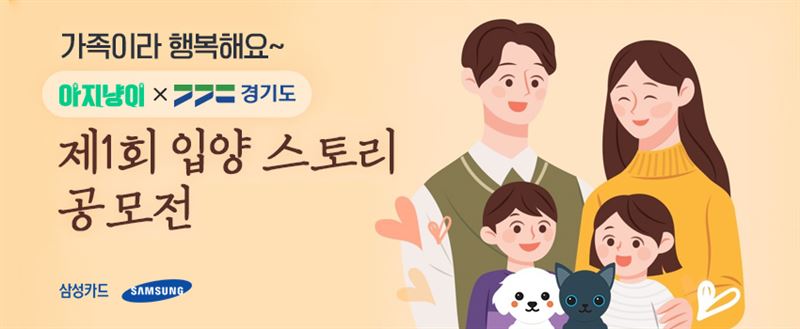 [한국정경신문=이정화 기자] 삼성카드는 ESG경영 일환으로 오는 4월 25일까지 경기도와 함께 반려동물 입양 스토리 공모전을 진행한다.