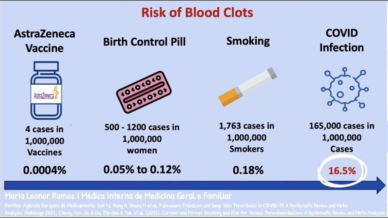 얀센 코로나 백신이 문제 되기 전에 아스트라 제네카 백신에서도 혈전 현상이 문제 되었습니다. 영국에서 2500만명 조사하여 약 100명 정도에서 혈전이 나타났습니다. 그런데 그 확률은 담배를 피우거나, 경구 피임약 사용의 경우보다 혈전 가능성이 1000분의 1 이하로 훨씬 작습니다. 물론 코로나 감염의 경우 혈전 가능성이 16.5%이니 백신을 맞는 것이 훨씬 낫습니다. 미국에서 2500만명이 코로나 감염되어 50만명이 사망하였으니 2% 치사율입니다. 다만 만약의 경우를 위하여 영국에서 30세 이하는 아스트라 제네카 대신 화이자나 모더나 백신을 맞는 것을 권하고 있습니다.