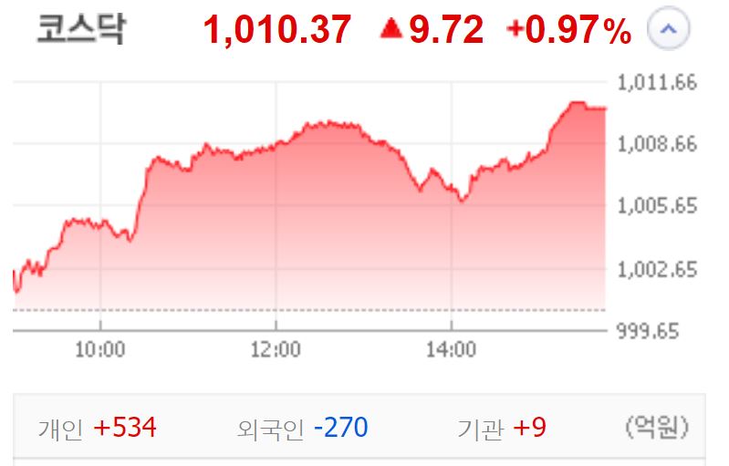 코스닥 시장도 개인들의 매수에 힘입어 상승을 이어갔습니다. 다만 종목 편차가 많습니다. 향후 실적이나 전망을 보고 선별하여 투자를 하여야 할 것입니다.