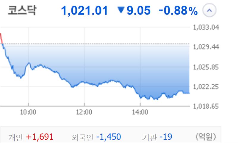 어제 한국 주식시장은 나스닥의 상승에 기인하여 상승으로 시작하다가 약보합으로 마감하였습니다. 특히 코스닥의 하락폭이 컸습니다.