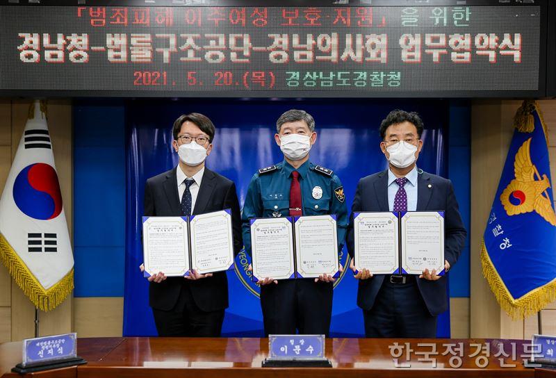 [한국정경신문(창원)=최규철 기자] 경남경찰청(청장 이문수)은 세계인의 날인 경남경찰청 대한법률구조공단 창원지부(지부장 신지식), 경상남도의사회(회장 최성근)와 범죄피해 이주여성의 권익옹호 및 법률·의료복지 증진을 위한 업무협약을 체결했다.