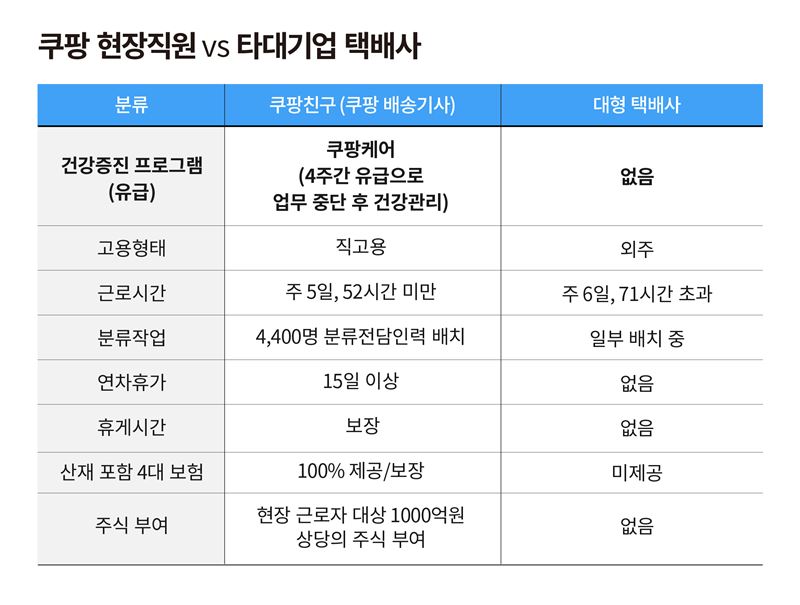 쿠팡과 타 물류업체 복지 제도 비교표 [자료=쿠팡]
