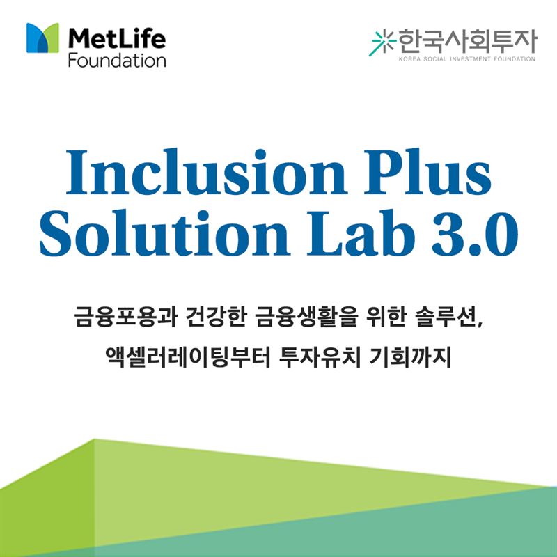 메트라이프생명 사회공헌재단은 한국사회투자와 금융포용 솔루션 발굴·지원 프로그램인 '인클루전 플러스 솔루션 랩 3.0'을 연다고 2일 밝혔다.