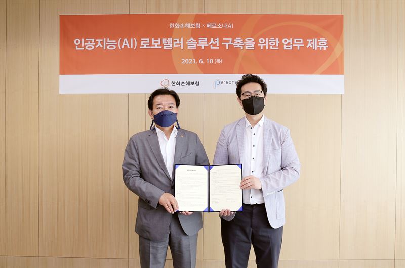 한화손보는 AI(인공지능) 대화엔진 전문기업 '페르소나AI'와 시스템 개발을 위한 업무 협약을 10일 맺었다.