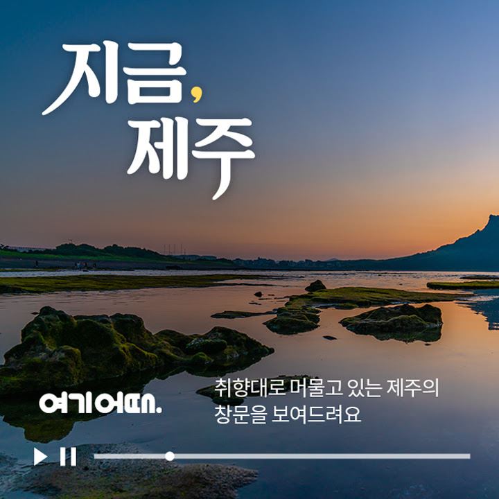 여기어때는 랜선 여행 콘텐츠 ‘지금, 제주’를 오픈했다고 5일 밝혔다. ‘지금, 제주’는 제주 곳곳의 풍경을 짧은 영상에 담아 감상할 수 있도록 자체 제작한 여행 콘텐츠다. ▲성산일출봉의 노을 ▲제주행 비행기에서 바라본 하늘 ▲하늘에서 바라본 우도, 삼달오름에 떨어지는 빗소리 ▲신창 풍차 해안도로의 바람소리 등 제주 구석구석 현지의 분위기와 생생한 사운드를 하나의 장면으로 담았다. 제주의 자연과 명소 이외에도 창밖 풍경이 아름다운 제주의 숙소와 제주 맛집의 풍경도 함께 보여준다.