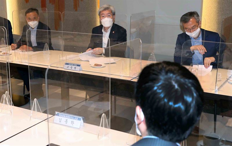 고승범 위원장(왼쪽 두번째)은 27일 은행회관에서 경제·금융시장 전문가들과 간담회를 가졌다. [자료=금융위원회]