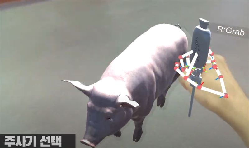 플랫폼을 이용해 가상으로 돼지 사육을 진행하고 있는 모습 [자료=XRtouch]