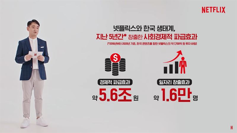 넷플릭스는 여기에 국내 콘텐츠 업계에 약 7700억원 규모의 투자를 기반으로 1만 6000개의 일자리 창출에도 기여했다고 설명했다. 넷플릭스는 올 한 해 약 5500억원에 달하는 투자 계획을 발표했다.