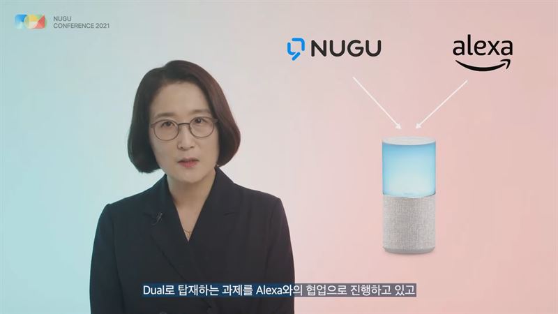 SKT 이현아 AI&CO장(컴퍼니장)은 지난 20일 온라인으로 열린 '누구 컨퍼런스'에서 "AI스피커인 '누구 캔들'에 알렉사와 누구를 듀얼로 탑재하는 과제를 아마존과 협업하고 있다"며 "내년 초에는 한국어와 영어를 모두 사용할 수 있는 '누구X알렉사'를 만나볼 수 있다"고 밝혔다.