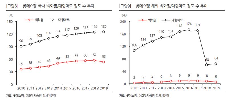 롯데쇼핑 매장 점포수 추이 [자료=한화투자증권]