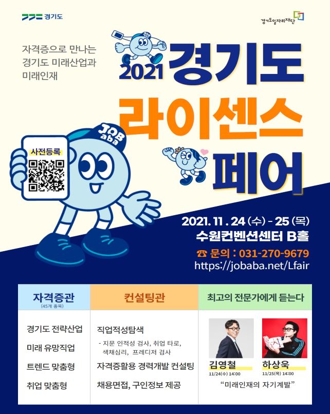 [한국정경신문(수원)=김영훈 기자] 경기도와 경기도일자리재단은 '자격증으로 만나는 경기도 미래산업과 미래인재'라는 주제로 오는 24일과 25일 양일간 수원컨벤션센터에서 '2021 경기도 라이센스 페어'를 개최한다고 21일 밝혔다.