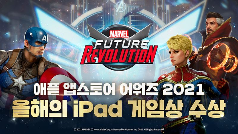 [한국정경신문=이상훈 기자] 비록 2021 대한민국 게임대상 대통령상은 놓쳤지만 올해 주목할 만한 게임으로 출시 전부터 화제를 모았던 넷마블의 모바일 오픈월드 액션 RPG '마블 퓨처 레볼루션'이 한국 게임업계 최초로 '애플 앱스토어 어워즈 2021'에서 올해의 아이패드(iPad) 게임상을 수상했다.