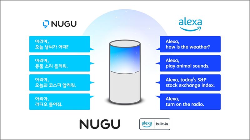 한국어와 영어를 하나의 음성인식 AI 스피커에서 동시에 인식할 수 있는 서비스는 SK텔레콤의 '누구 멀티 에이전트 서비스'가 국내 최초다.