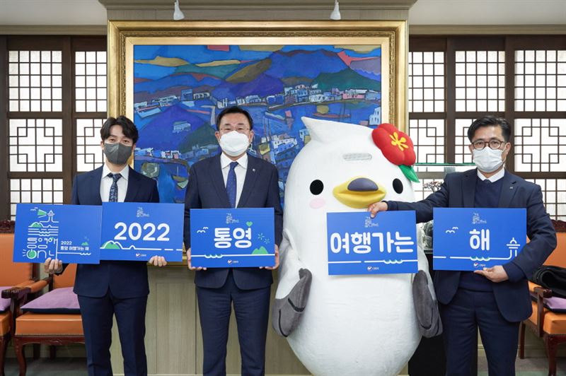 [한국정경신문(통영)=김영훈 기자] 통영시는 지난 22일 '2022 통영 여행가는 해'의 성공적인 추진과 지역 관광발전을 위해 통영 출신의 인기 개그맨 허경환과 민간 마스코트 '동백이' 캐릭터를 관광홍보대사로 위촉했다.