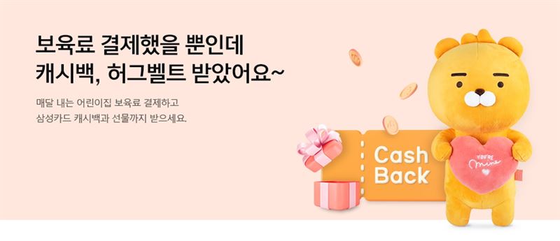 또 3월과 4월에 국민행복 삼성카드로 어린이집 보육료를 결제하면 각각 5000원의 캐시백이 지급돼 최대 1만원의 캐시백을 받을 수 있다.