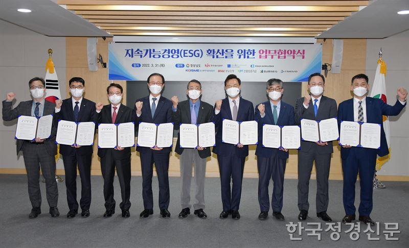 [한국정경신문(창원)=최규철 기자] 경남도는 31일 도청 도정회의실에서 한국생산성본부, (주)나이스디앤비, 경남상공회의소협의회 등 8개 기관과 ‘2022년도 경남형 지속가능경영 확산을 위한 ESG 지원사업’ 업무협약을 체결했다.
