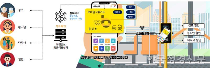 비패스 모바일 교통카드는 블록체인 DID(Decentralized Identifiers, 탈중앙화 신원증명) 기술에 행정정보공동시스템을 연계함으로써 간단한 정보만으로 신원이 확인되어 모바일 교통카드 발급은 물론 ‘일반권’과 ‘우대권’에 따라 요금이 할인된다.