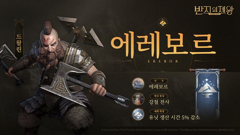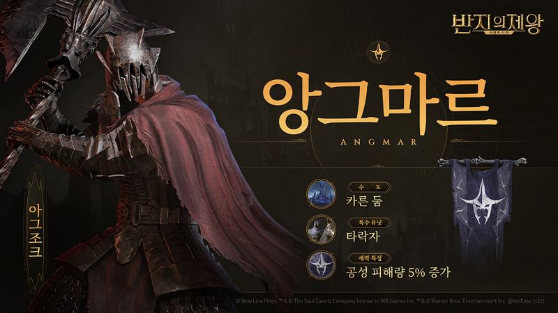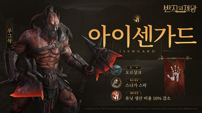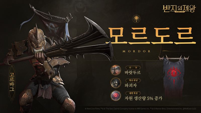 [한국정경신문=이상훈 기자] 넷이즈게임즈가 사전예약 진행 중인 신작 모바일 SLG 게임 '반지의 제왕: 전쟁의 시작'의 세력별 특성과 특수 유닛을 6일 공개했다.