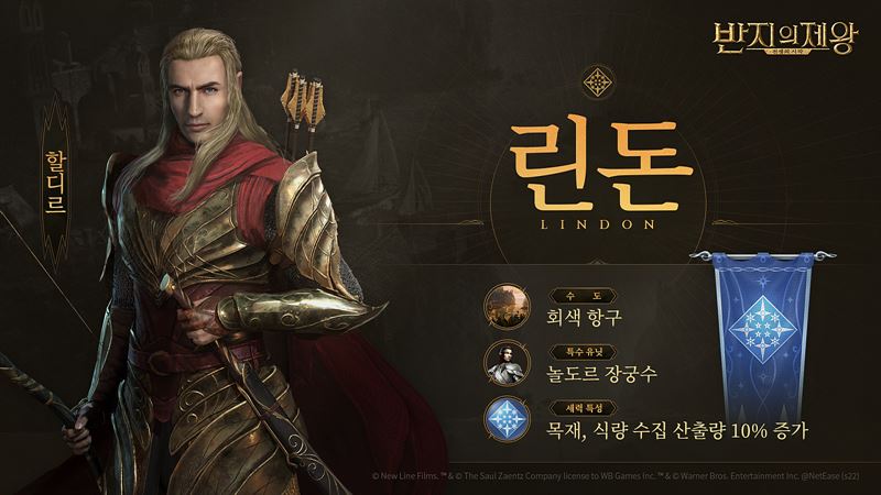 중간계 서북쪽에 위치한 요정 왕국 '린돈'을 선택하면 회색 항구에서 영웅 '할디르'로 시작하게 된다. 린돈은 '목재, 식량 수집 산츌량 10% 증가' 특성이 있어 풍족한 보급으로 장기적인 세력전쟁에 우위를 가질 수 있다. 또한 특수 유닛인 '놀도르 장궁수'를 통해 사거리 싸움에서 이득을 취할 수 있다. 요정들의 항구도시를 경험하고 싶다면 린돈이 최고의 선택이 될 수 있다.
