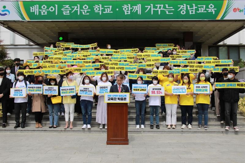 그는 “전국 시·도교육청에서 가장 먼저 미래교육체제의 기반을 조성해 왔다”며 올 12월 준공을 앞둔 경남 미래교육의 거점 기관인 ‘미래교육테마파크’, 빅데이터-AI에 기반한 학생맞춤형 교육 플랫폼 ‘아이톡톡’, 본격화 되고 있는 스마트 단말기 보급 사업 등이 맞물려 “학생 맞춤형 교육체제 완성을 눈앞에 두고 있다”고 소개했다.