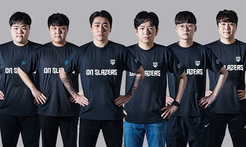 온더의 e스포츠팀 '온 슬레이어스' 멤버. (왼쪽부터)'갓데드' 김성신, '준바' 김준혁, '배찌' 박준기, '티에스' 유태석, '킹' 이승원, '페리' 정범기 코치 / 온 슬레이어스(On Sla2ers) 제공