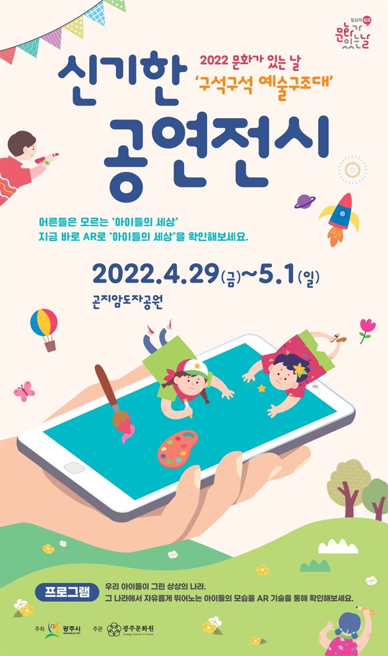 특히 4월 문화가 있는 날 ‘신기한 공연전시’는 지역 아동들이 참여한 문화예술과 AR기술을 활용한 전시를 선보인다. 미술과 연극을 융합해 공연콘텐츠를 만들고 이에 AR기술을 입혀 전시가 가능한 작품을 만들었다.