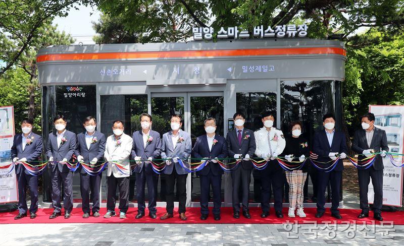 시는 쾌적하고 편리한 대중교통 이용을 보장하고 차량사고 및 돌발상황으로부터 보행자의 안전을 지키기 위하여 국도비 포함 예산 18억7500만원을 투입해 밀양시 7곳에 스마트버스정류장과 스마트횡단보도를 각각 구축했다.