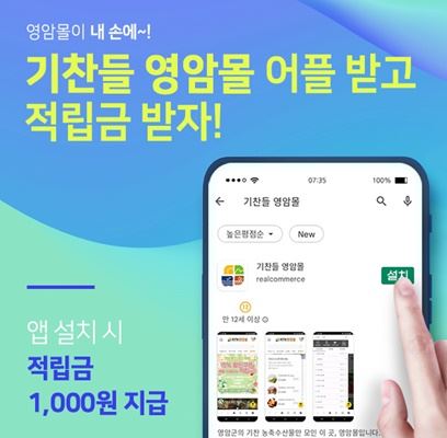 지난 10일 안드로이드 플레이스토어 및 IOS 앱스토어에서 기찬들 영암몰 어플리케이션 및 앱을 다운받을 수 있으며 다운받은 고객 전부에게 적립금 1000원을 지급하는 이벤트를 진행한다.