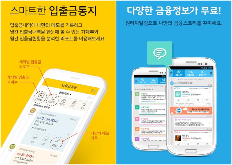 우리은행 관계자는 “우리WON뱅킹 내 WON알림서비스를 통해 대고객 입출금 알림서비스를 더욱 향상 시킬 예정”이라고 말했다.