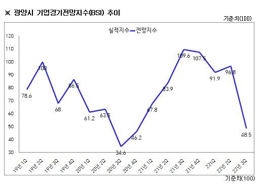 광양시 기업경기전망지수(BSI) 추이 [자료=광양상공회의소]