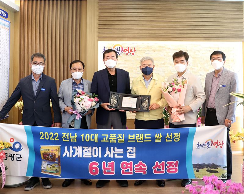 [한국정경신문(영광)=최창윤 기자] 영광군(군수 강종만)은 지난 13일 전라남도가 주최한 2022년 전남 10대 고품질 브랜드 쌀 시상식에서 '사계절이 사는 집' 브랜드가 6년 연속 수상하는 영예를 안았다고 15일 밝혔다.