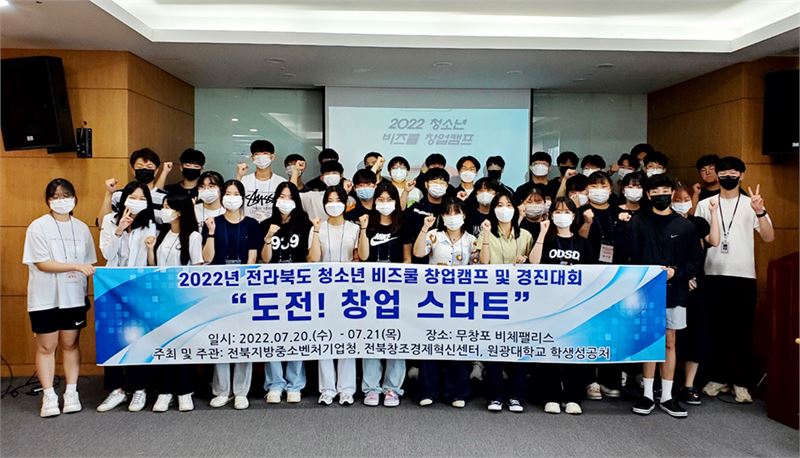 전북지방중소벤처기업청과 전북창조경제혁신센터, 원광대 대학일자리플러스센터가 공동 주최한 2022년 청소년 비즈쿨 창업캠프 ‘도전! 창업 스타트’가 지난 20일부터 21일까지 양일간 무창포 비체팰리스에서 진행됐다고 25일 밝혔다. [자료=원광대학교]
