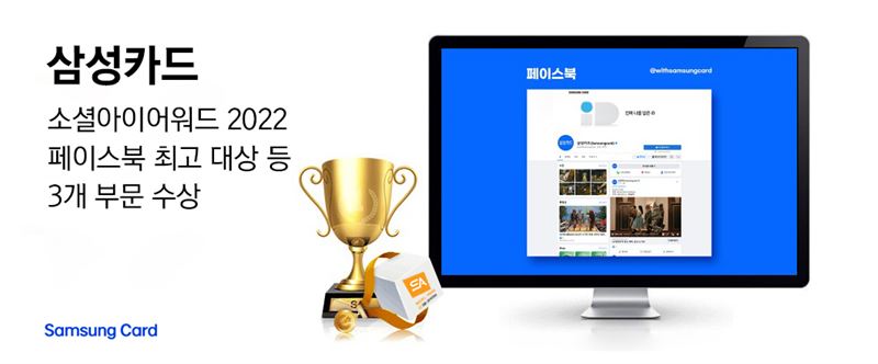 삼성카드가 '소셜아이어워드 2022'에서 페이스북 최고 대상 등 3개 부문을 수상했다. [자료=삼성카드]