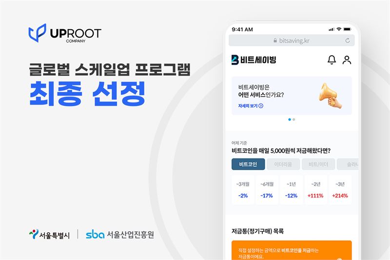 [한국정경신문=이상훈 기자] 디지털 자산 적립식 구매 솔루션 '비트세이빙'을 운영하는 업루트컴퍼니는 서울산업진흥원이 주최하고 노틸러스인베스트먼트가 공동 지원하는 'SBA 글로벌 스케일업 프로그램'에 최종 선정됐다고 31일 밝혔다.