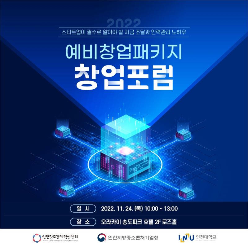 한편 창업포럼에는 인천창조경제혁신센터와 인천대학교의 2022년 예비창업패키지 및 창업프리스쿨 지원기업이 참여할 예정이다.