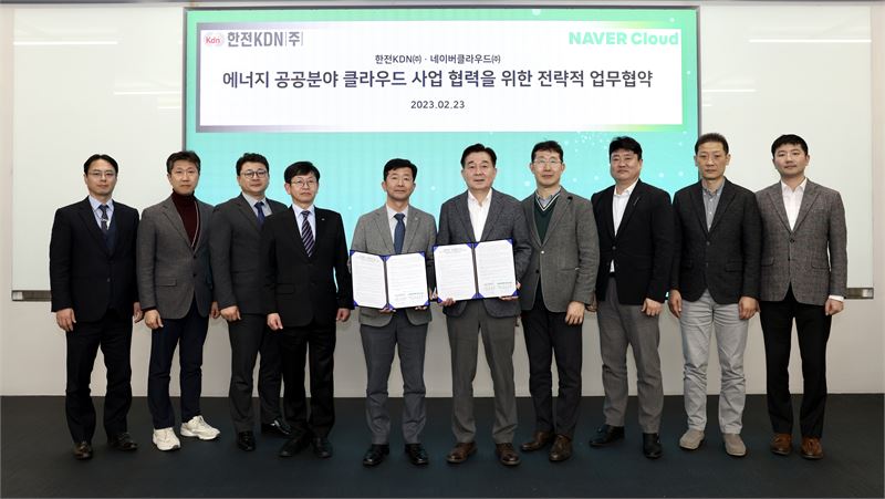 이날 협약식은 에너지ICT 전문기업인 한전KDN이 정부가 추진하고 있는 클라우드 활성화 정책에 적극 대응하고자 글로벌 클라우드 기업인 네이버클라우드(주)와 공동사업 수행을 약속하고 민관협력 모델 구현을 위한 것.