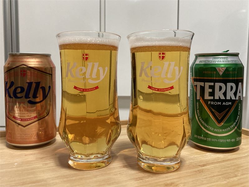 첫입은 켈리가 부드럽고, 테라는 시간이 지나도 탄산이 보다 오래 유지됐다. 또 맥아 100% 올 몰트로 출시된 켈리가 테라보다 맛이 진했다. 소주와 섞은 ‘소맥’이 필요 없을 정도로 강했다고나 할까. 알코올 도수는 켈리가 4.5%, 테라는 4.6%도로 유사했다. 켈리와 테라 모두 각각의 브랜드 정체성에 걸맞은 특성을 가졌다고 느꼈다.