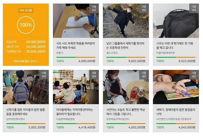 이번 더블기부 캠페인은 사회 소외계층의 꿈과 새로운 출발을 응원하기 위해 마련된 캠페인이다. 네티즌과 임직원 기부금을 1대1로 매칭해 두 배의 성금이 쌓이는 방식을 통해 지난 달 2일부터 약 한 달간 네이버 해피빈을 통해 진행됐다.