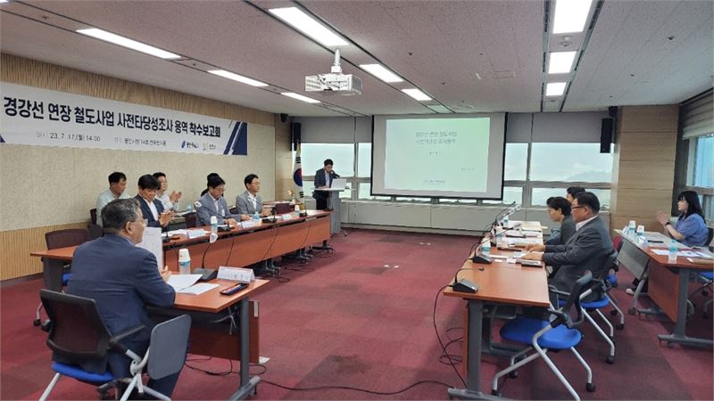 [한국정경신문(경기 광주)=김영훈 기자] 경기도 광주시는 17일 용인시청 14층 컨퍼런스룸에서 '경강선 연장(광주·용인) 철도사업 사전타당성 조사 용역' 착수보고회를 용인시와 함께 공동 개최했다.