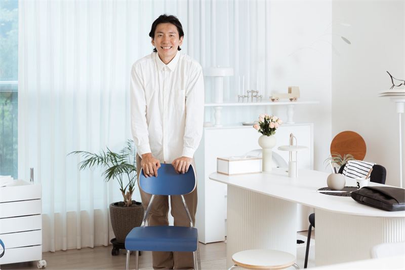 직접 디자인한 의자 앞에 선 연한희 대표 (자료=쿠팡)