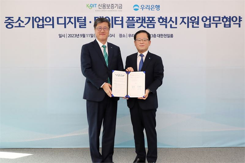 [한국정경신문=윤성균 기자] 우리은행(은행장 조병규)은 서울시 중구 우리은행 본점에서 신용보증기금(이사장 최원목, 이하 ‘신보’)과 ‘중소기업의 디지털·데이터 플랫폼 혁신 지원을 위한 업무협약’을 체결했다고 11일 밝혔다.