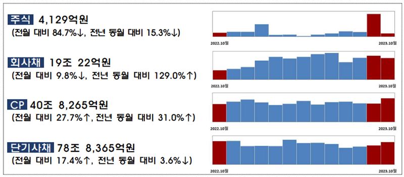 10월 중 기업의 직접금융 조달실적 현황 (자료=금융감독원)