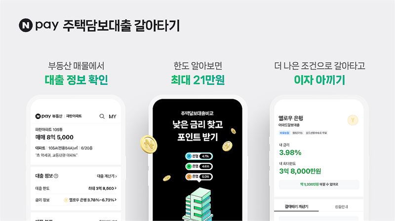 네이버페이에 따르면 지난 16일까지 네이버페이 주택담보대출 갈아타기를 통한 비교 횟수는 약 2만2000건, 금액으로는 총 3조9500억원이었다.