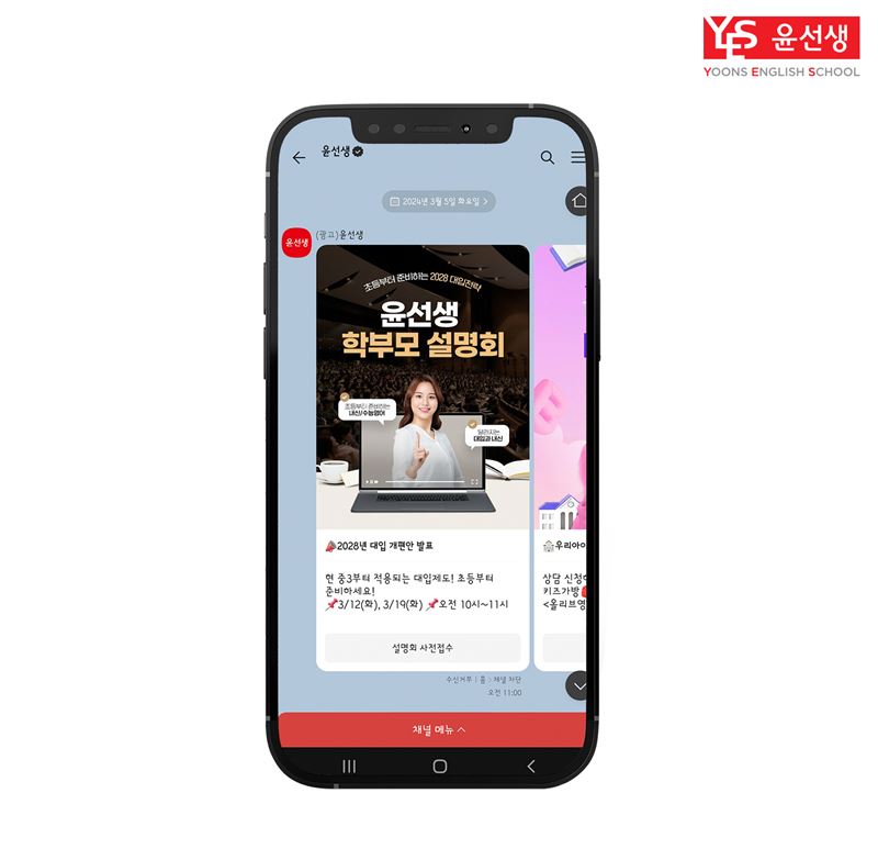지난 달 공식 카카오톡 채널을 오픈한 영어교육 전문기업 윤선생도 학부모와의 소통 강화에 박차를 가하고 있다. 윤선생 카카오톡 채널을 구독하면 최신 교육 트렌드는 물론 할인 혜택, 상품 소개 등 유용한 정보를 정기적으로 받아볼 수 있다. 윤선생 카카오톡 채널은 개설 보름 만에 친구 수 3500명을 돌파했다.