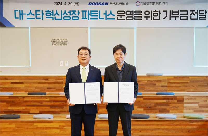 [한국정경신문=이정화 기자] 두산에너빌리티가 경남창조경제혁신센터에 지역 스타트업 육성을 위한 기부금 1억5000만원을 전달했다.