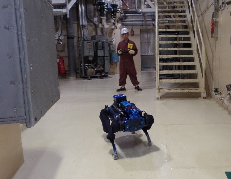 한국수력원자력은 지난 7일 원전 해체를 위한 계통 제염(除染)에 착수한 고리 1호기에 4족 자율주행 로봇을 투입했다. (자료=한수원)