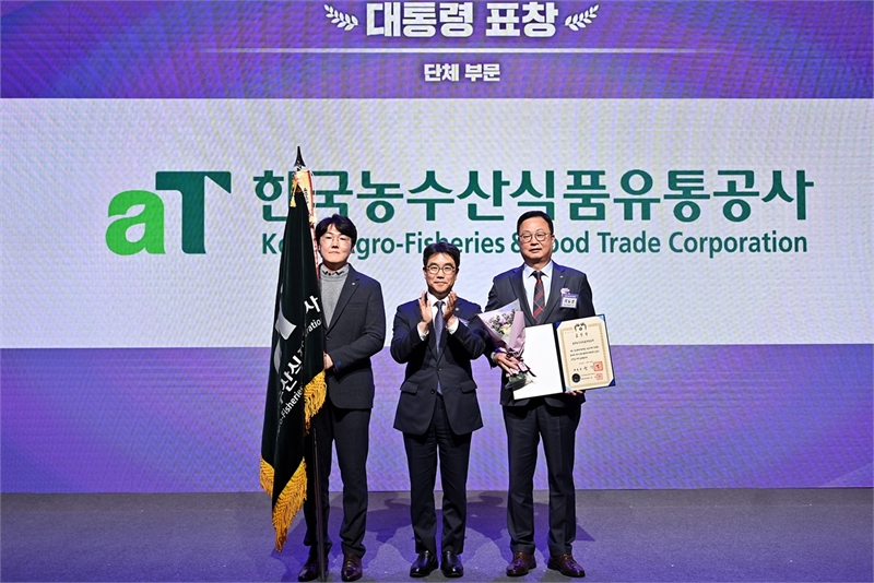 [한국정경신문(나주)=최창윤 기자] 한국농수산식품유통공사(aT, 사장 홍문표)는 지난 28일 서울 그랜드 워커힐에서 열린 ‘2024년 공공구매 촉진대회’에 참여해 공공구매 유공 분야 최고 훈격인 ‘대통령 표창’을 받았다고 밝혔다.